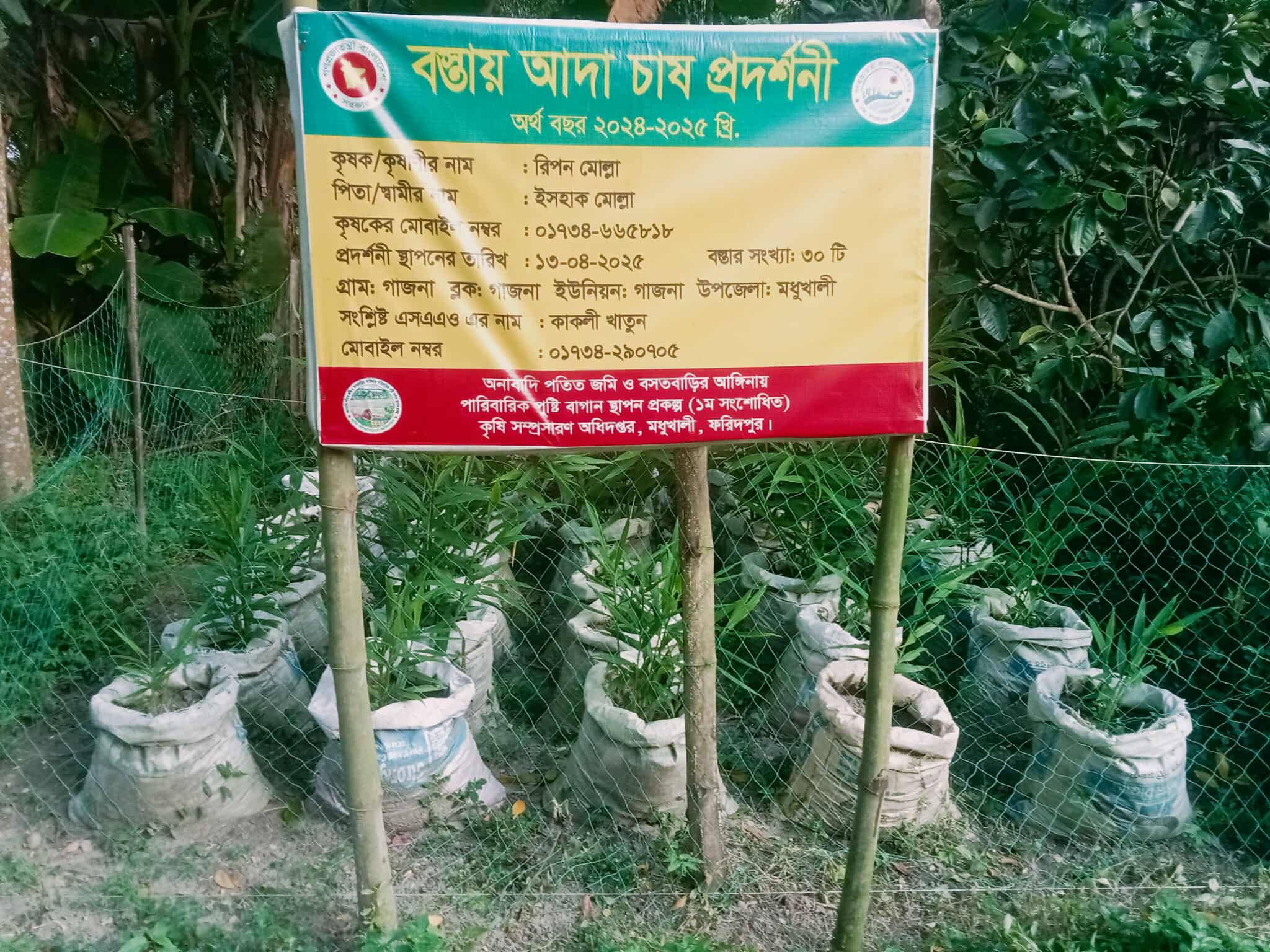 অনাবাদি পতিত জমি ও বসত বাড়ির আঙ্গিনায় পারিবারিক পুষ্টি বাগান স্থাপন প্রকল্পের আওতায় বস্তায় আদা চাষ প্রদর্শনী